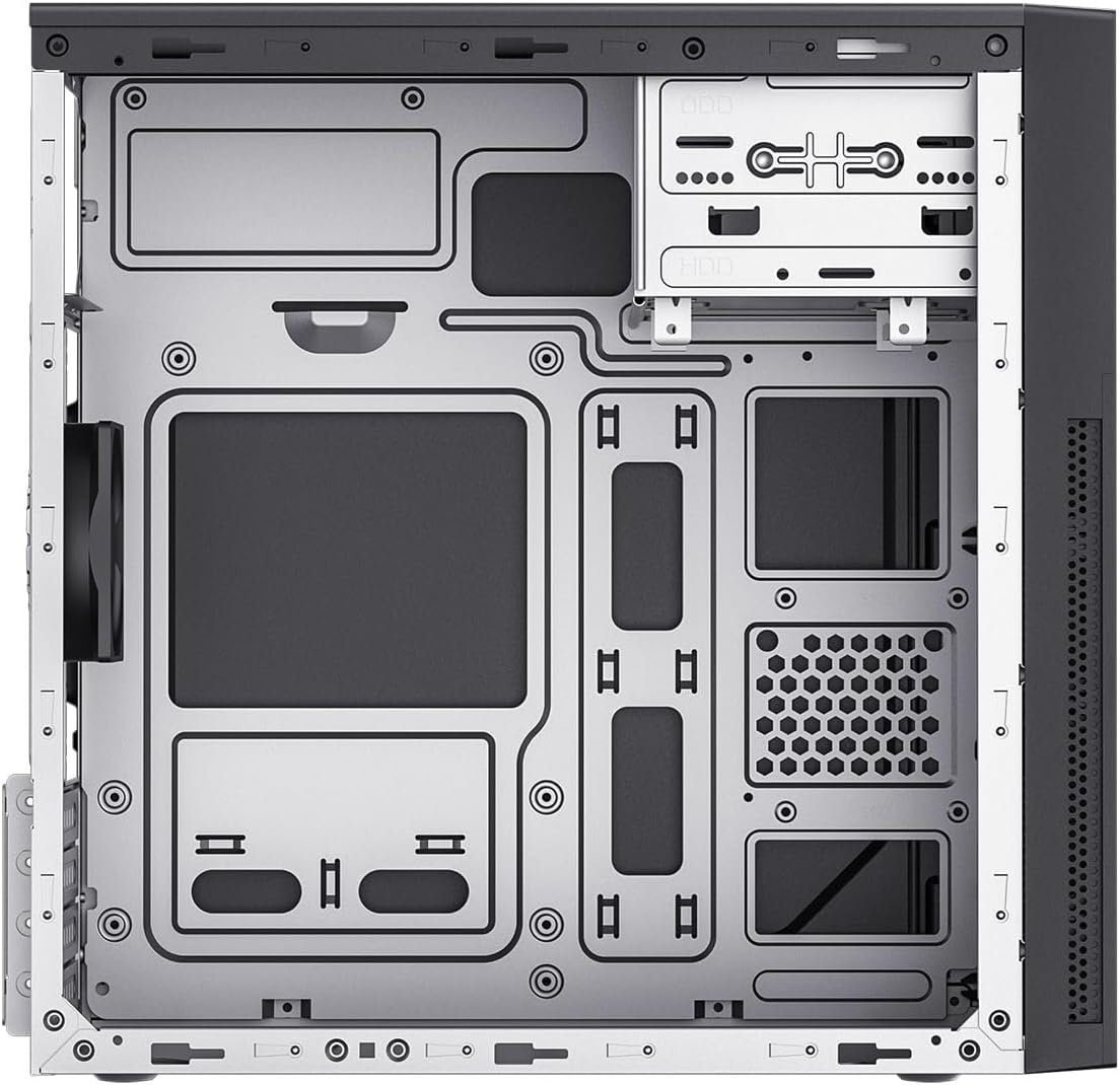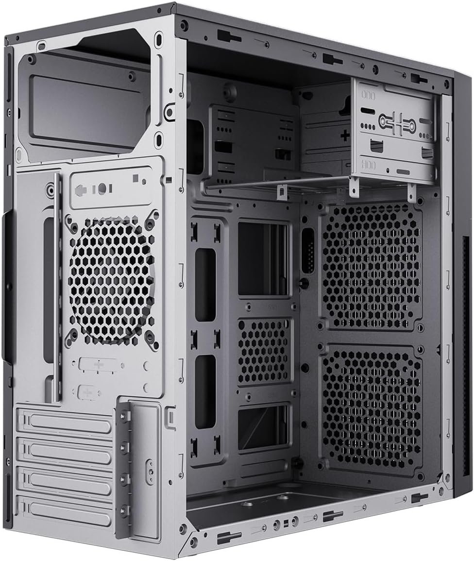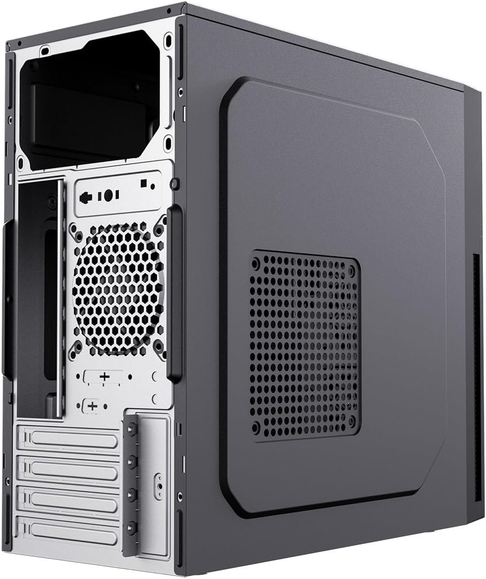 Installed micro-ATX Gigabyte H310M-S2H quite well apart from the rear plate. The plate slot was about 1 or 2 mm too narrow so the plate was bent slightly, but still usable. I fitted a 2.5″ SSD, a 3.5″ hard drive, DVD drive with no issues. I liked the rolled edges to the metal (no cuts!) and the front panel usb and audio socket unit. Yes, built down to a price , but I wanted reduce the overall size and improve the look. 4 stars because of the rear panel fitment.