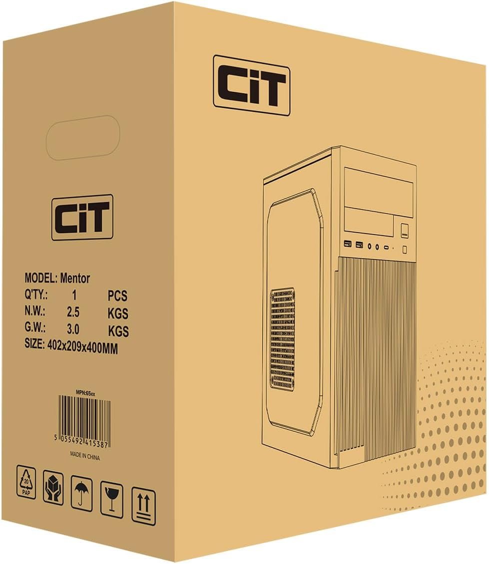 The CiT Mentor is a smart state-of-the-art business PC case suitable for Micro-ATX and Mini-ITX Motherboards, ideal for any professional workspace. The Micro impresses with its sleek black exterior. The front panel is a distinctive one with a focus on proficient cooling, it is the perfect PC for any modern office setting. Behind the front panel two 120-millimeter fans can be installed and the rear of the case an 80-millimeter fan is pre-installed. Connectivity is smooth to the latest devices with two USB3.0 and one USB-Type C ports enhancing productivity. Featuring a clean interior with high compatibility, designed to save space ensures a neat and tidy workspace. The Mentor is a compact elite business case made for those who want a pragmatic PC and combining the beautiful aesthetics and the performance, the Mentor advances your working environment.